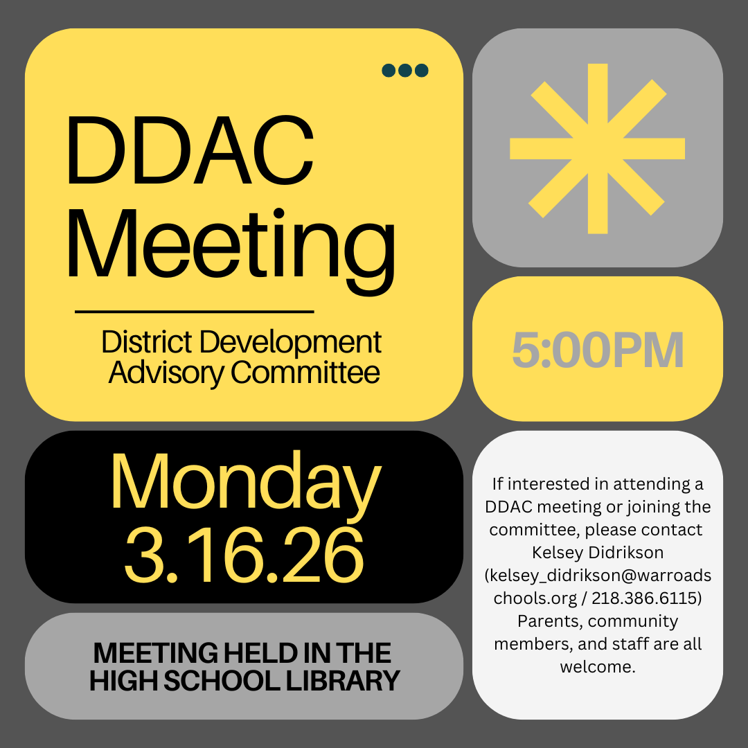 We also invite you to save the date for Yeti Fest on Saturday, March 14, 2026. This event is hosted by All-In Warroad, and we are incredibly grateful for their dedication to our students. All funds raised by All-In Warroad during Yeti Fest go directly toward the purchase of adaptive and unified playground equipment, ensuring our school play areas are truly accessible to everyone. A huge thank you to All-In Warroad for their leadership and commitment to an inclusive community!