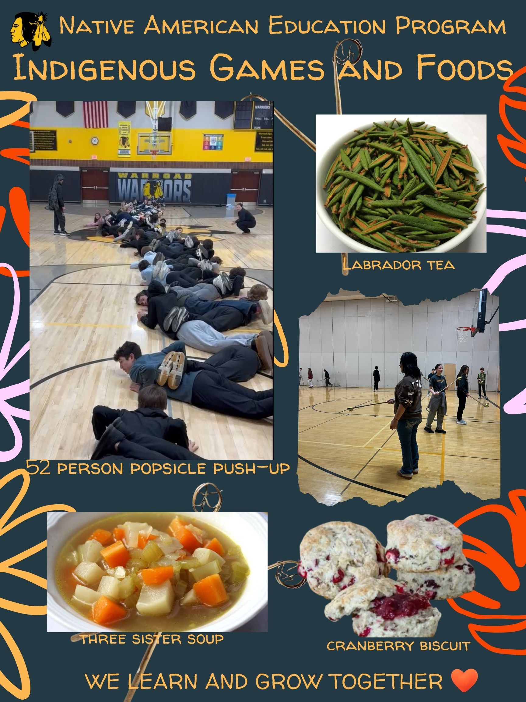 The Native American Education Program proudly shares Indigenous Foods & Games at Warroad Public School ! For three incredible days, January 27, 28, and 29, Warroad students from Pre-K through 12th grade immersed themselves in traditional teachings, hands-on learning, and engaging in cultural learning.