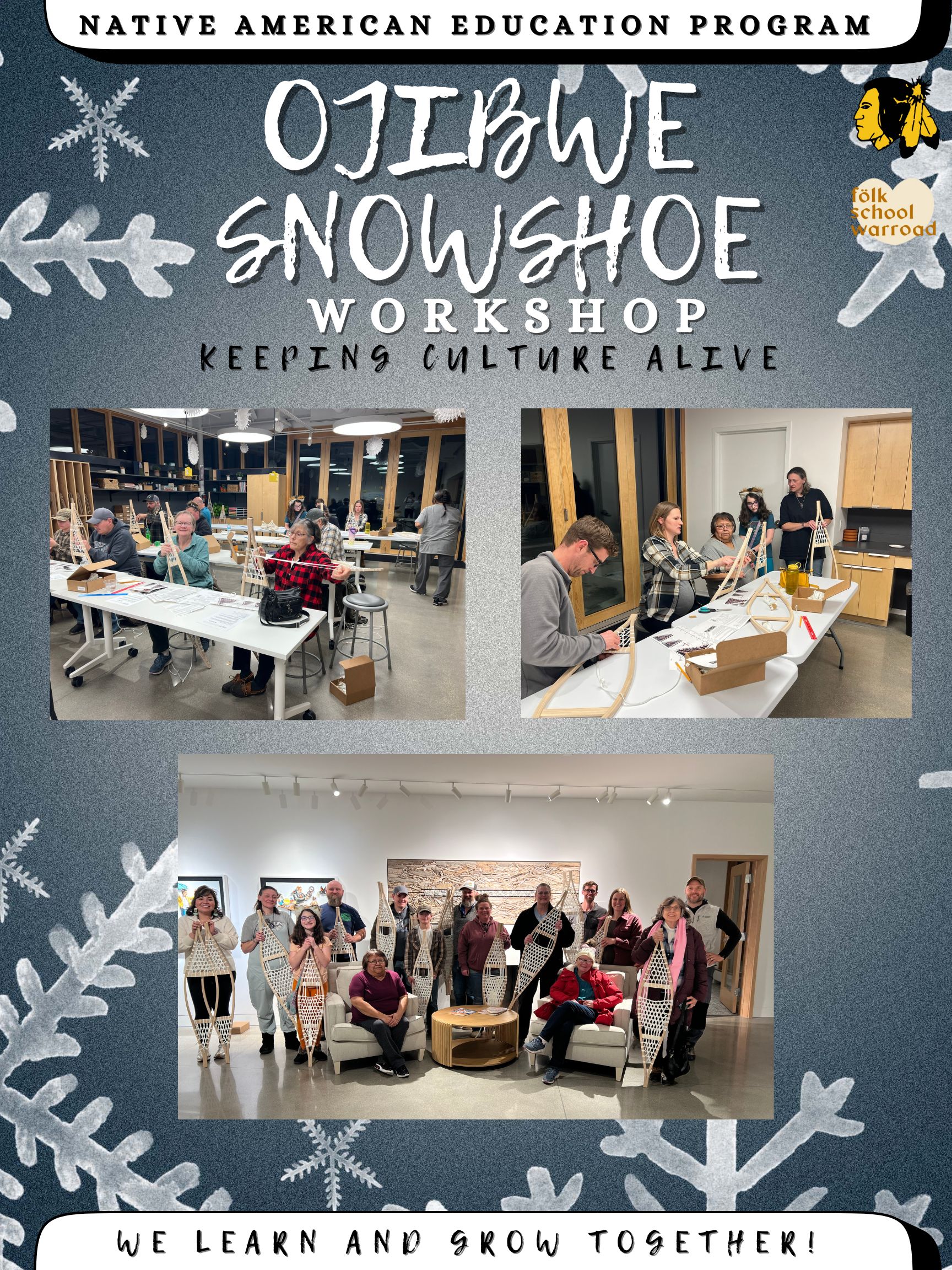 The WPS Native American Education Program and Warroad Folk School were proud to come together as a team to honor Native American culture! keeping traditions alive by learning and sharing, and to ensure these stories and teachings continue for generations to come! It was an amazing two-day workshop, held at RiverPlace on the evening of January 13 and 14, with delicious snacks each evening provided by " The Hawk catering services". Heartfelt thank you to our amazing instructors, Ms. Kathy Napper and Mr. Jackson Harren. |
